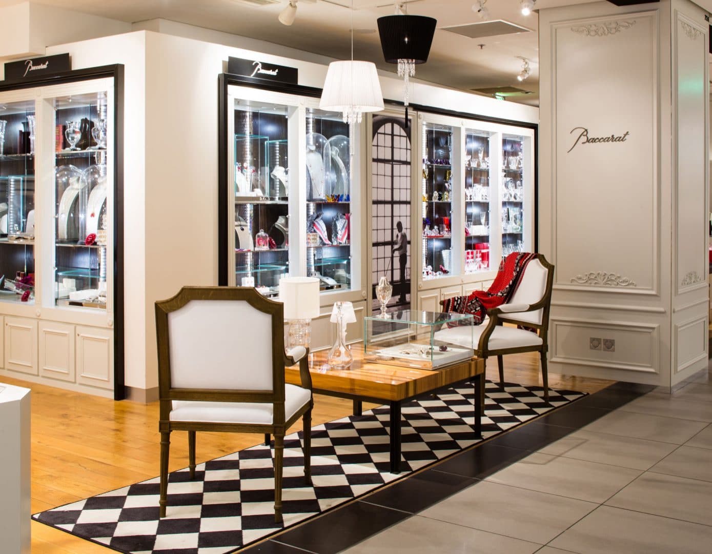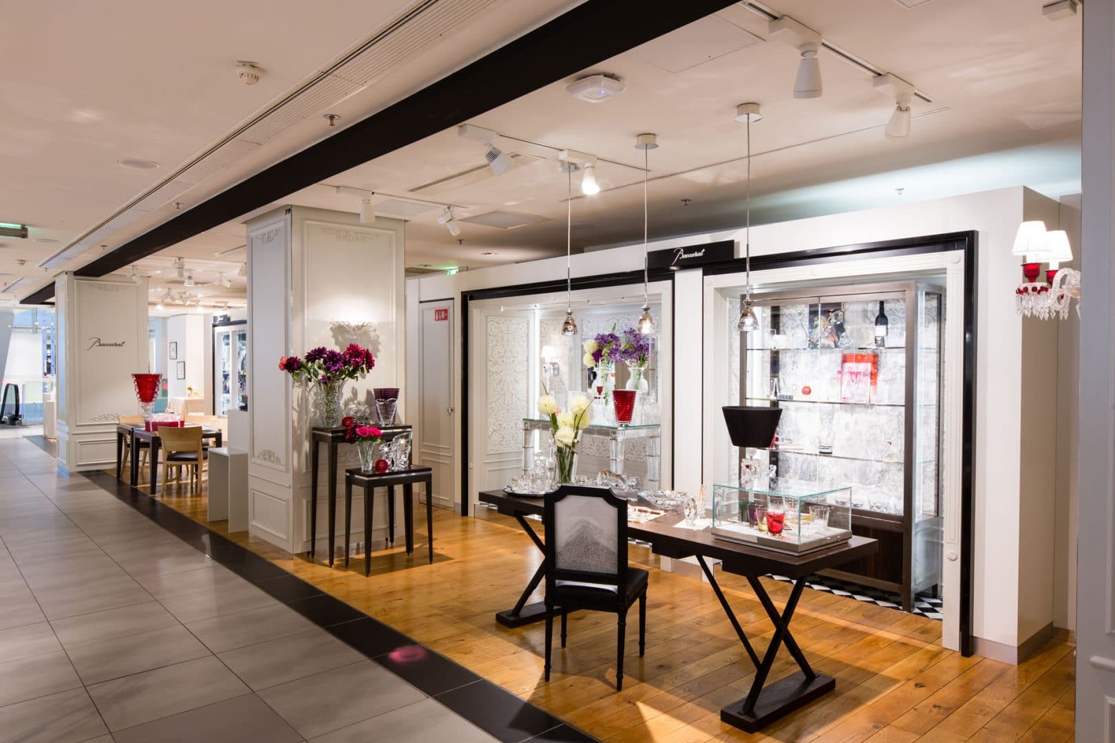 BACCARAT, l’invitée « Guest star » du Lafayette Maison ! Une mise en scène de l’art de vivre à la française … grande table dressée, vaisselier de Madame, bureau de Monsieur … sur fond de moulures haussmanniennes redessinées.