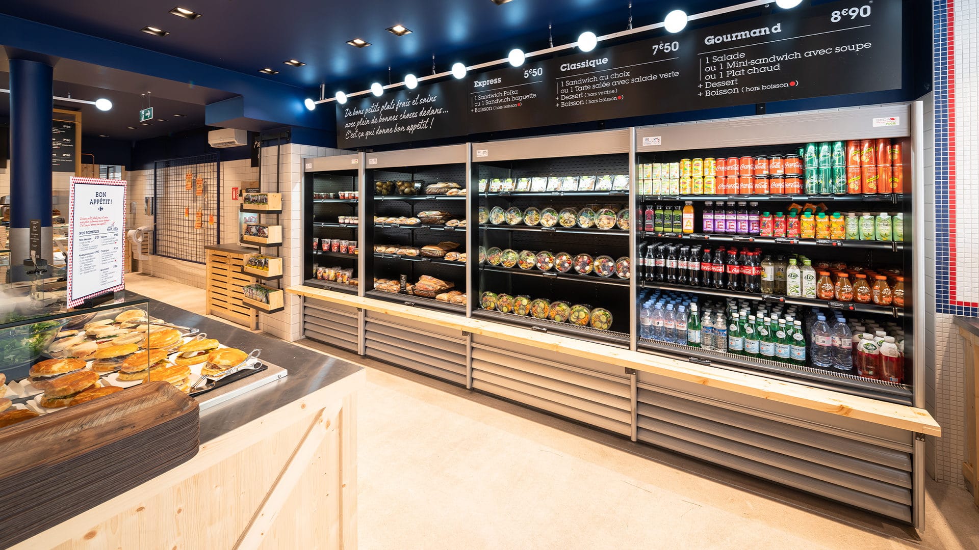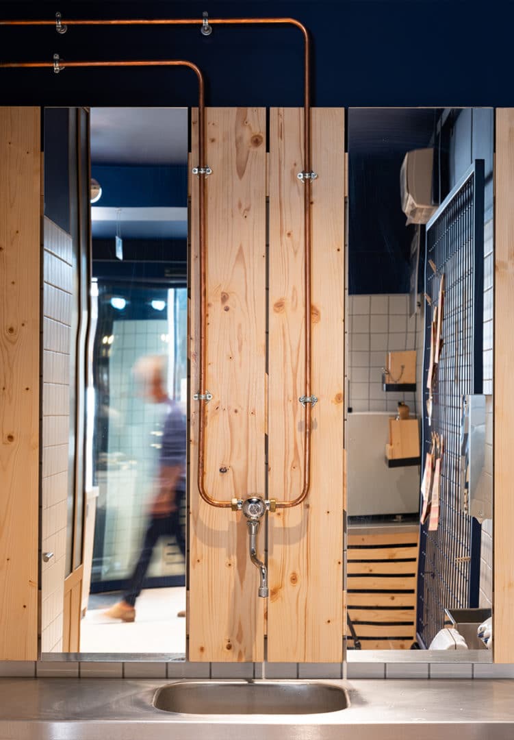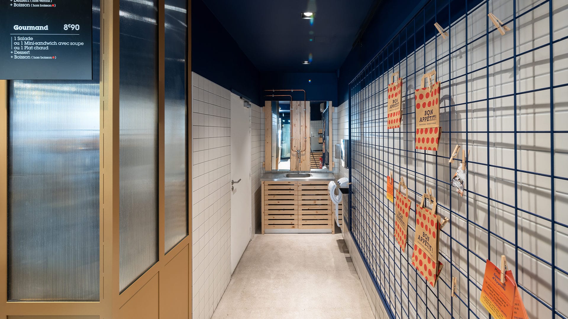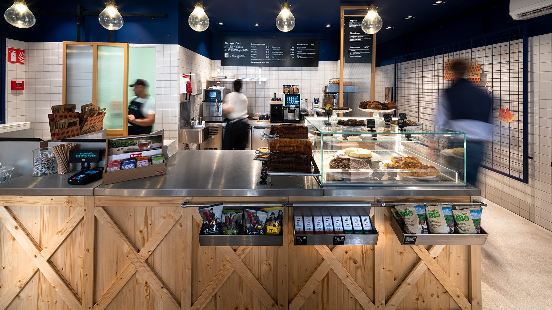 Le lieu propose une offre courte adaptée aux urbains : offre coffee shop servie au comptoir & offre fraîche de saison en libre-service.