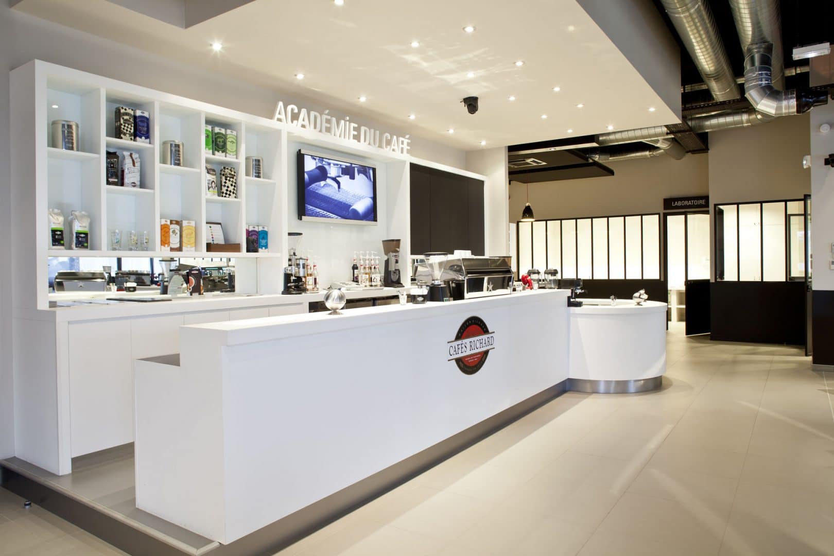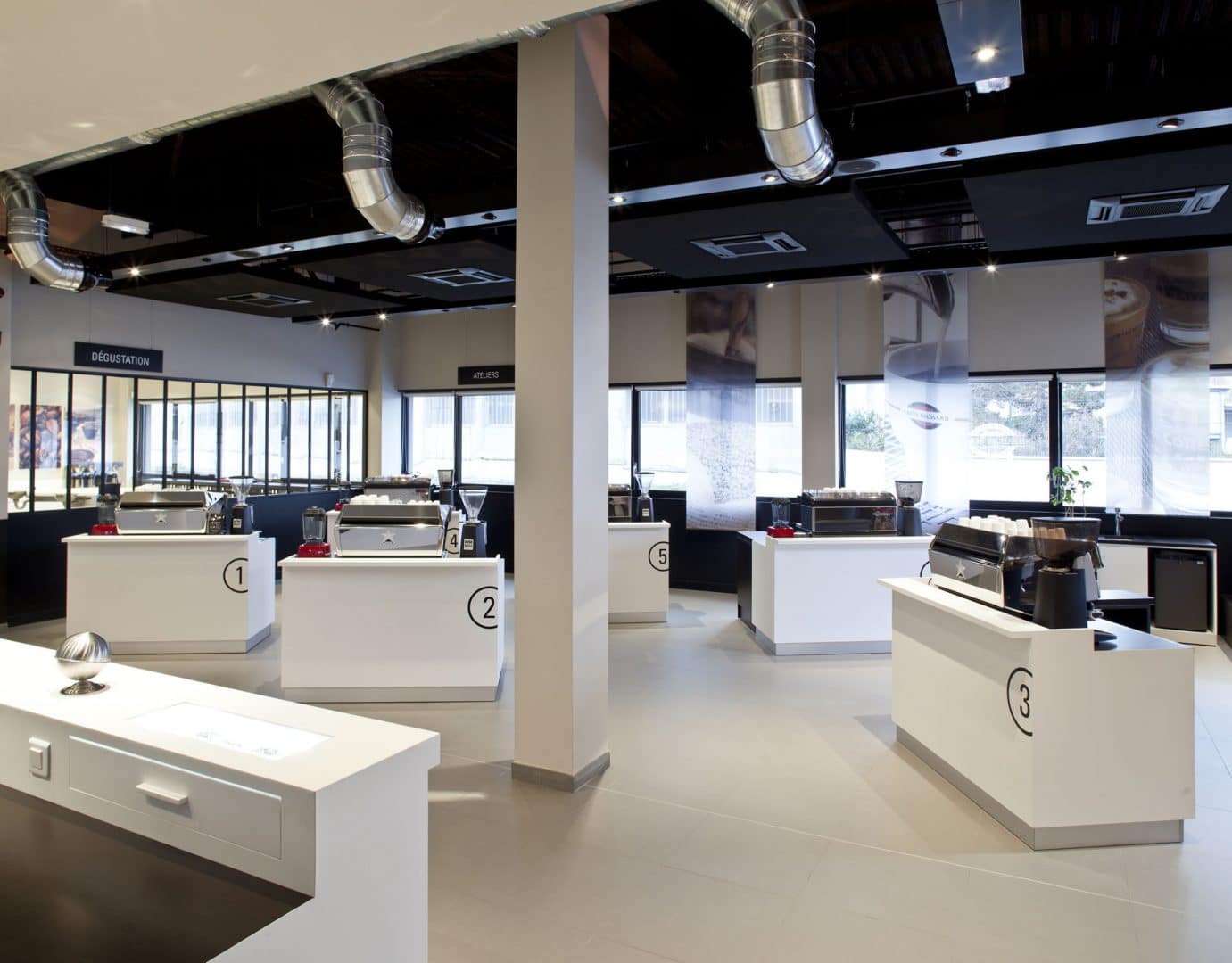 Un accueil personnalisé aux codes de la marque raconte l’histoire de la « maison » au travers d’une exposition de photos sur les plus belles terrasses parisiennes et d’une collection unique de machines à café. Création d’un vrai laboratoire immersif pour former les meilleurs Baristas … l’académie du café.