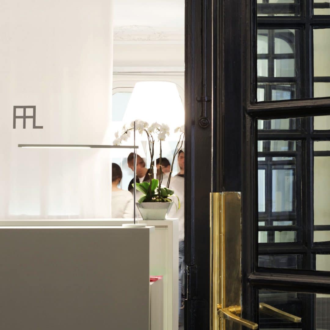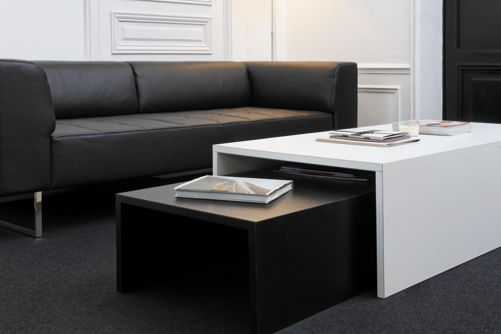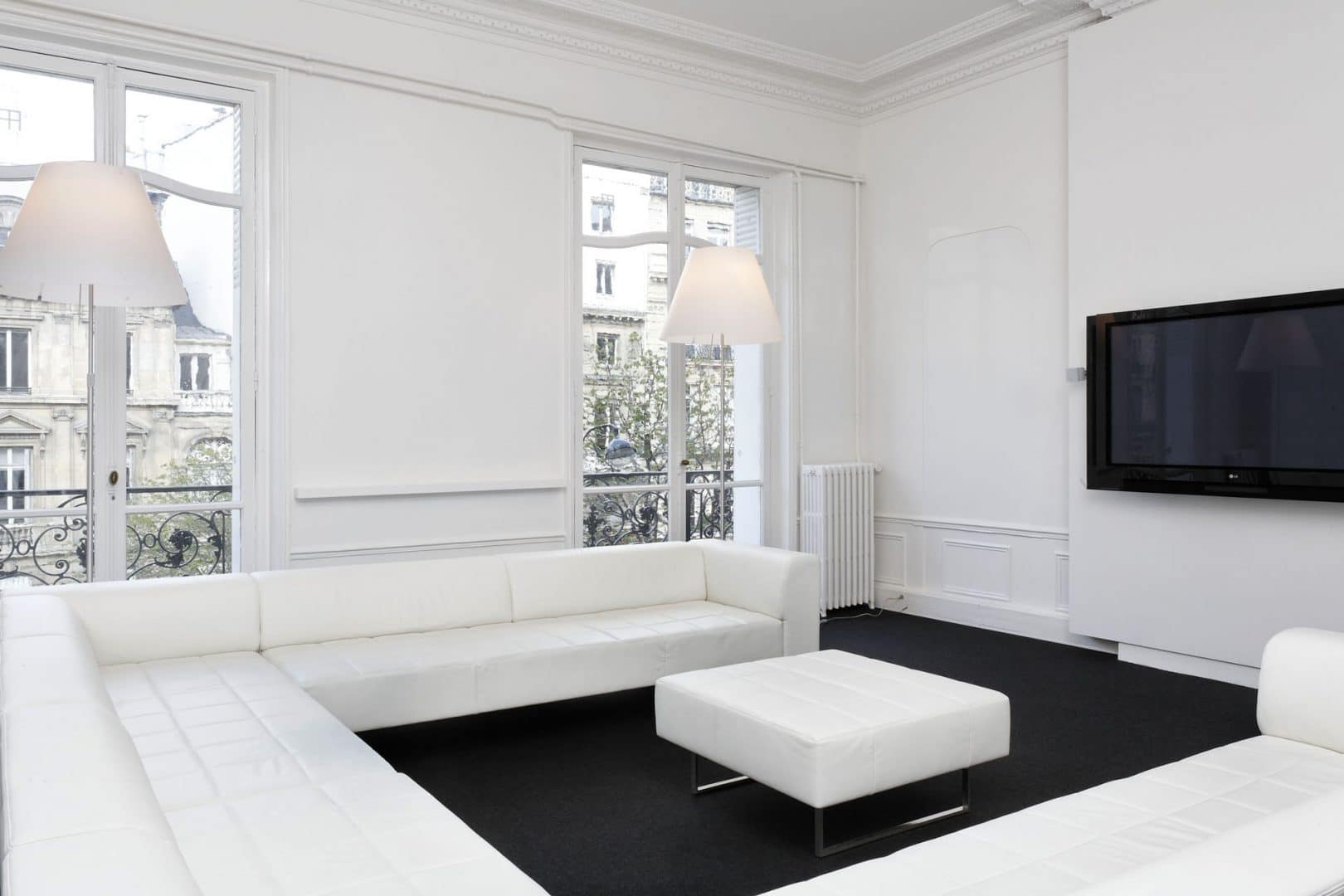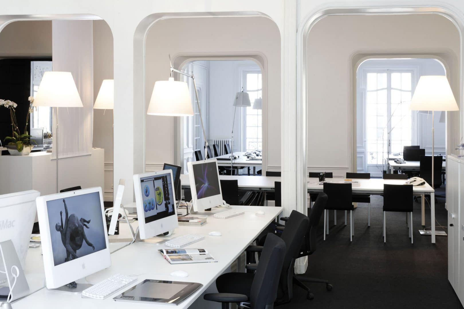 Un appartement pur haussmannien investi par une agence impertinente … une identité de marque pour un studio basé sur l’essentialité, noir et blanc, sans décor, grands benchs, larges canapés en salle de réunion, sono et baby-foot à consommer avec modération.