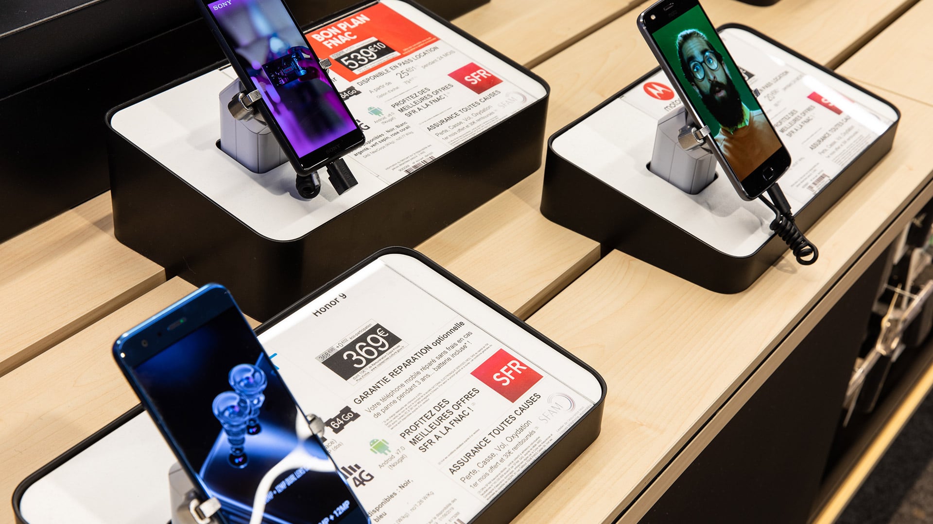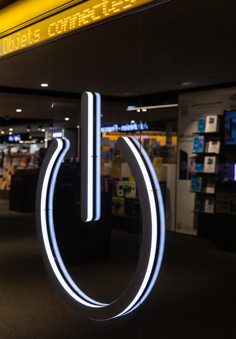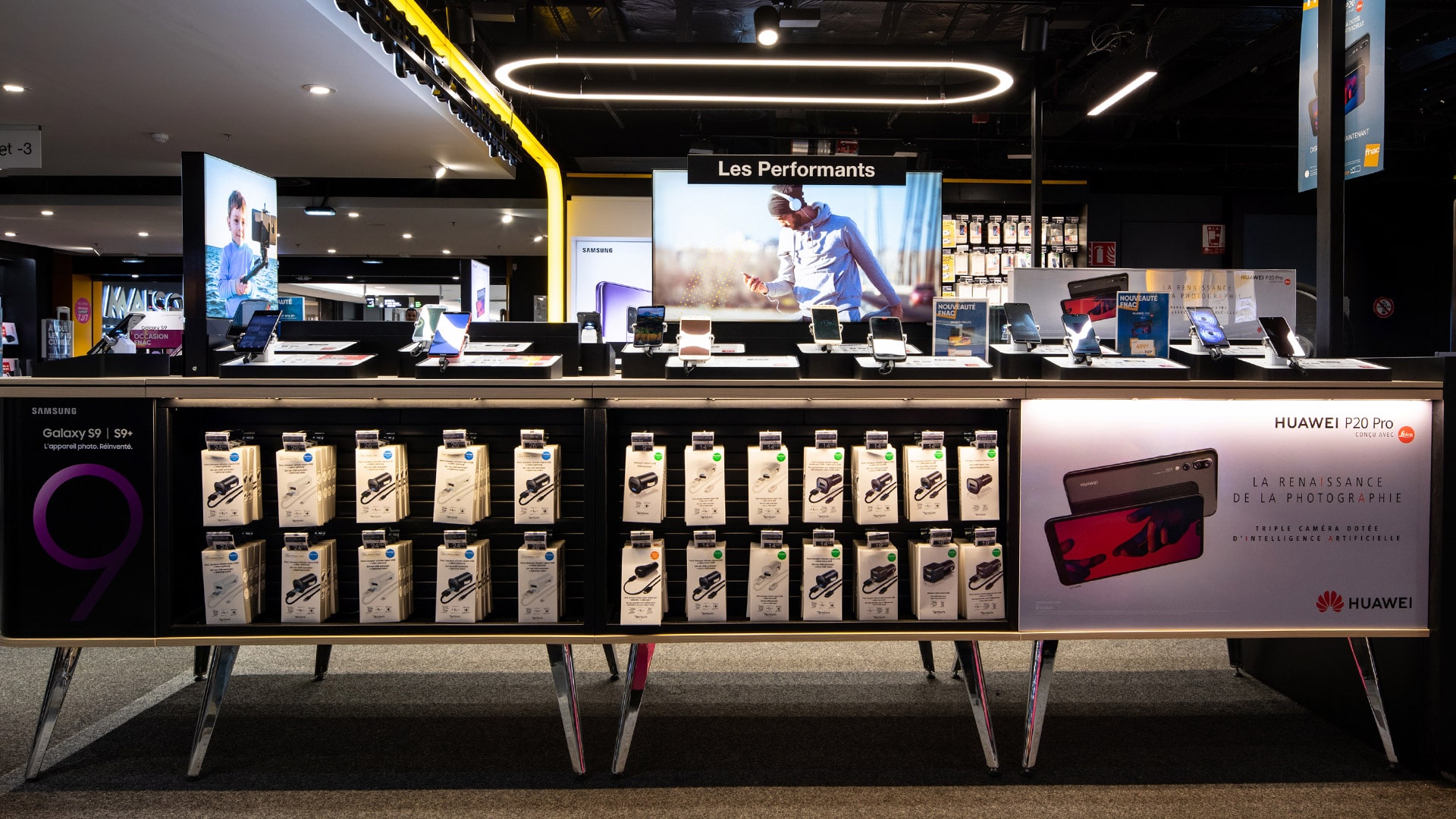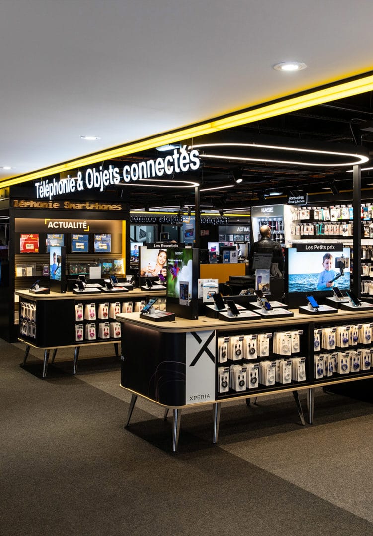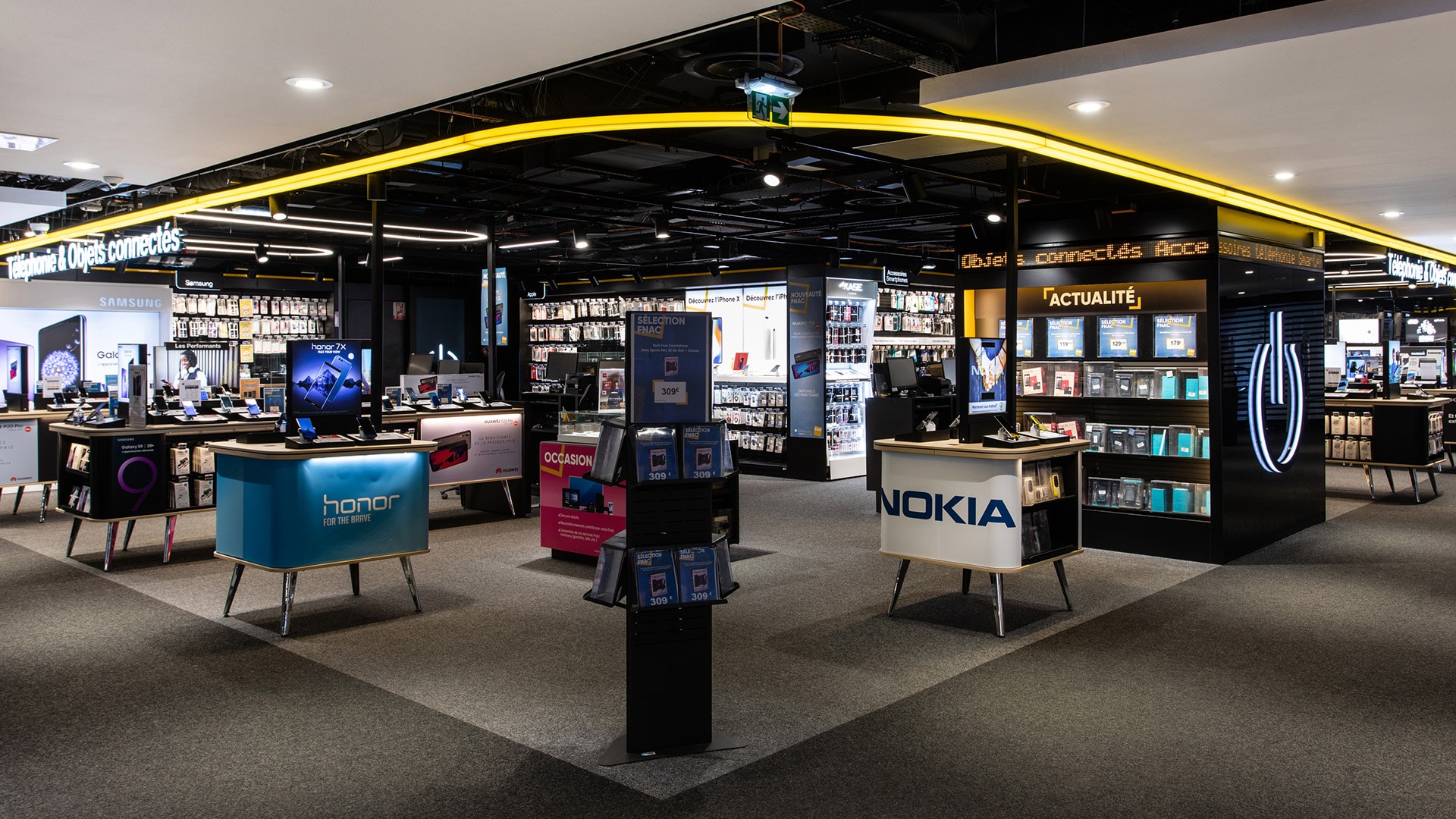 Une offre téléphonie et objets connectés scénographiés sur de longues tables aux accents 50’, un clin d’œil à la date de naissance de la Marque.