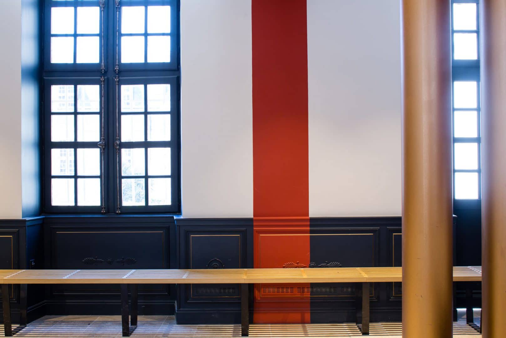 L’ambition de redonner un statut à l’accueil du Musée des Invalides en détournant les codes décoratifs militaires et en additionnant le patrimoine architectural d’une ornementation Empire, Napoléon oblige !